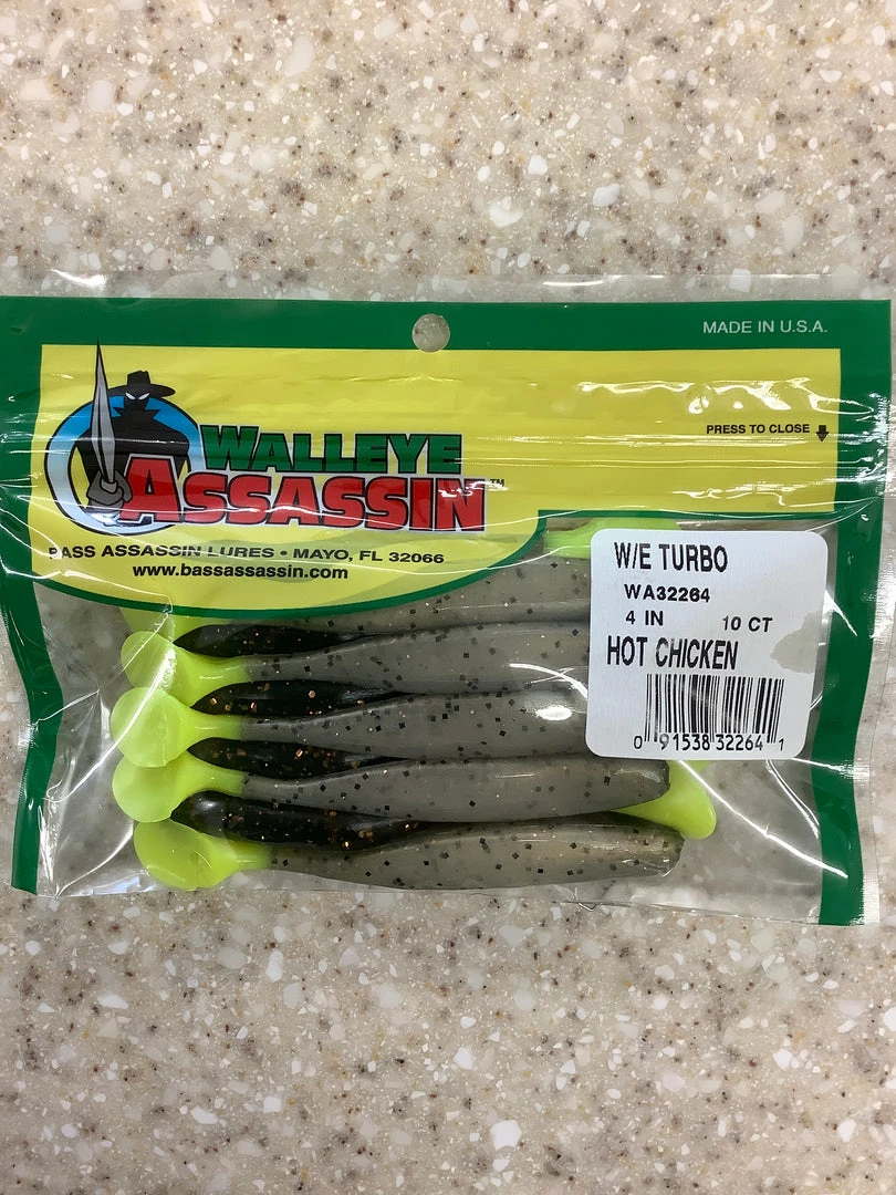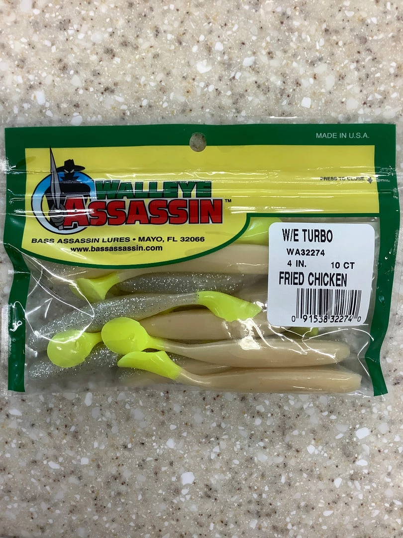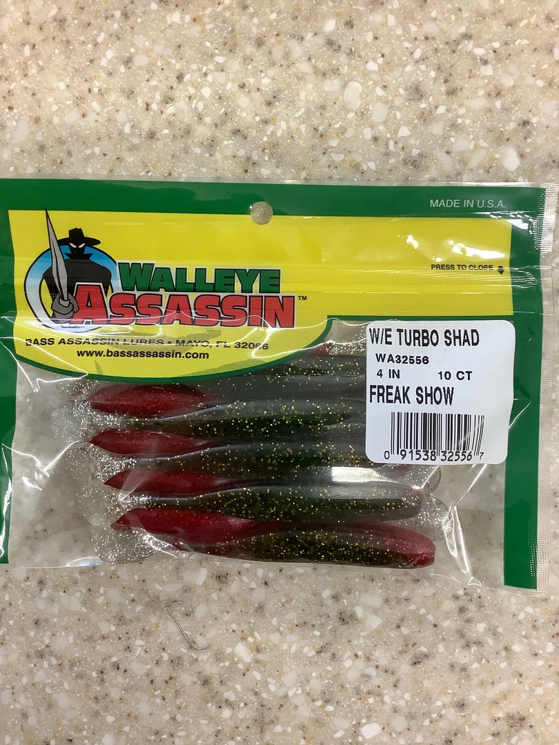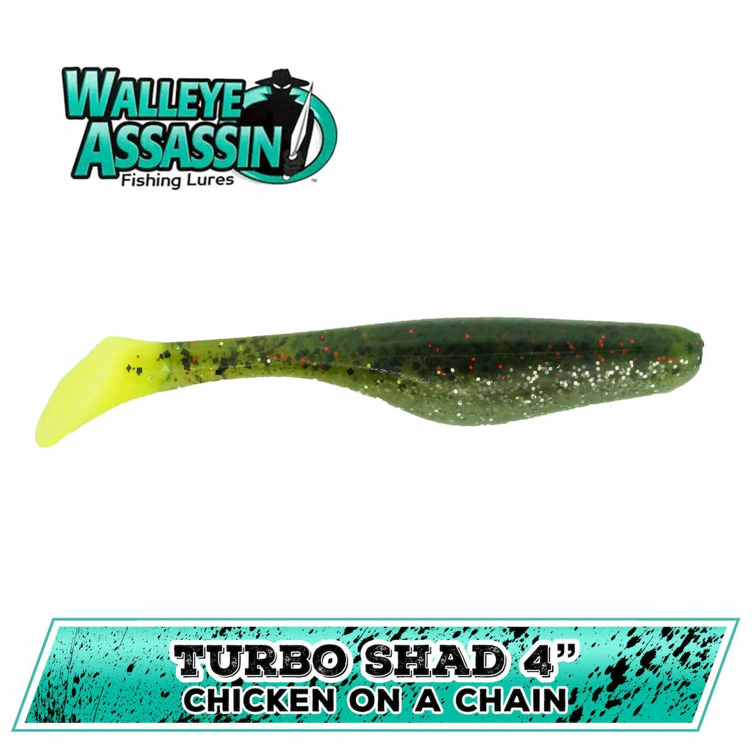 The Walleye Turbo Shad is designed the same as the Sea Shad! The super-soft plastic gives you great tail action with the slightest twitch of the rod! It irresistible!!