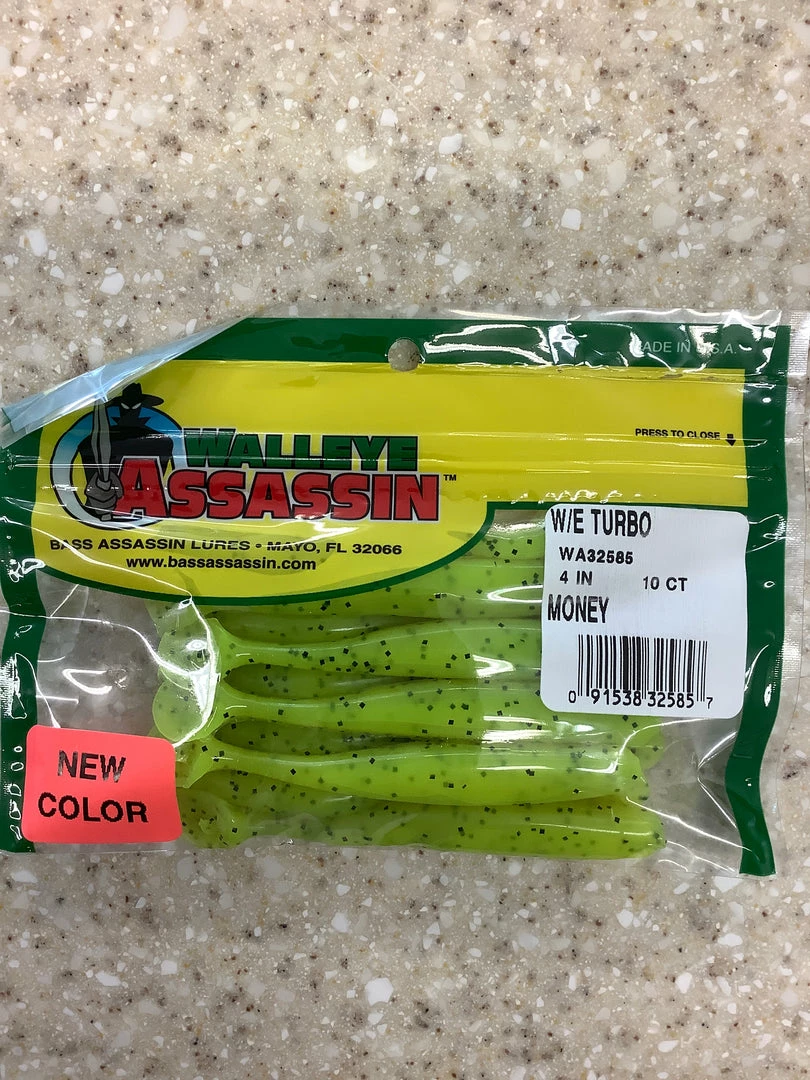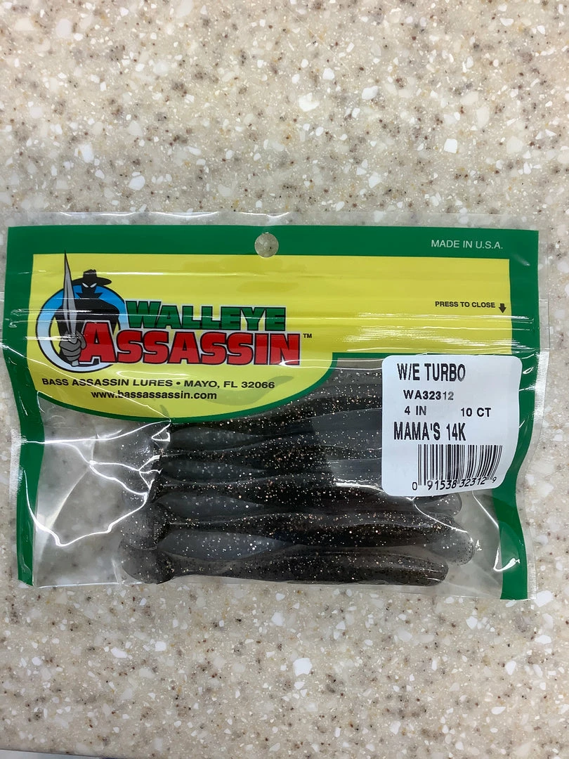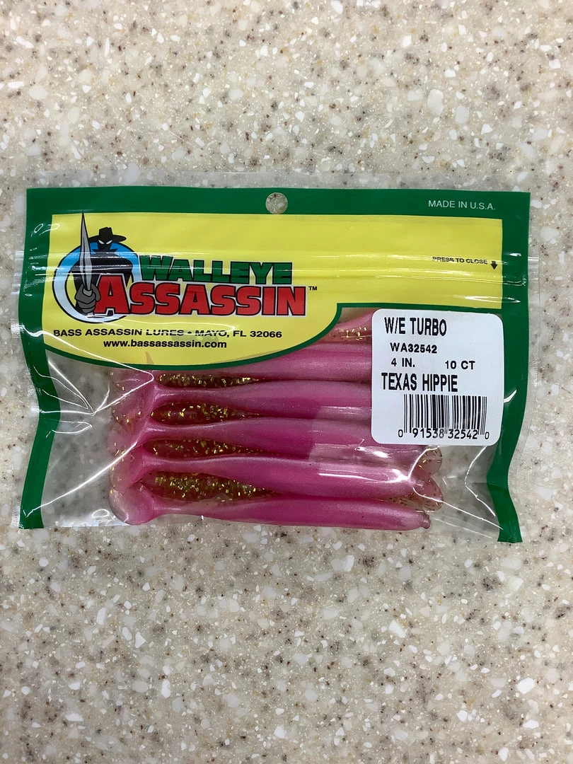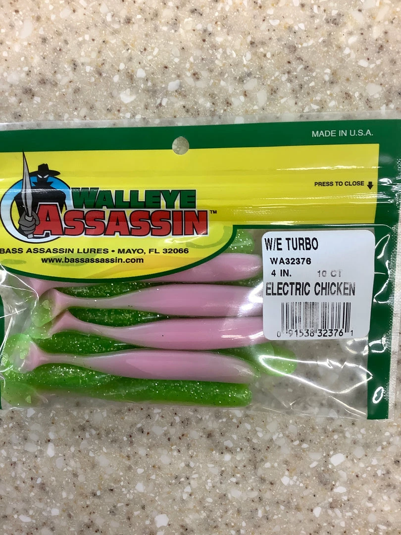 The Walleye Turbo Shad is designed the same as the Sea Shad! The super-soft plastic gives you great tail action with the slightest twitch of the rod! It irresistible!!