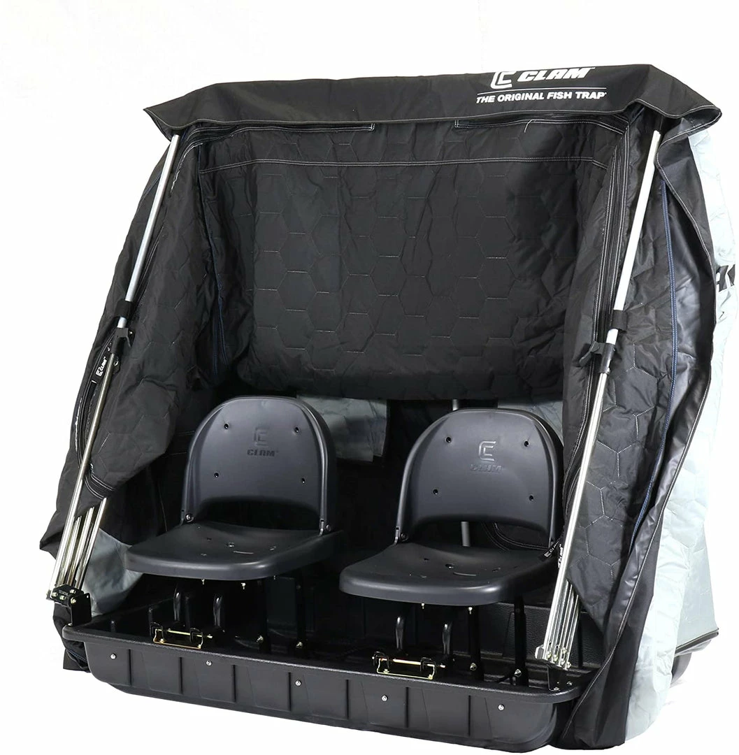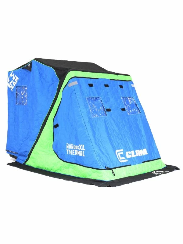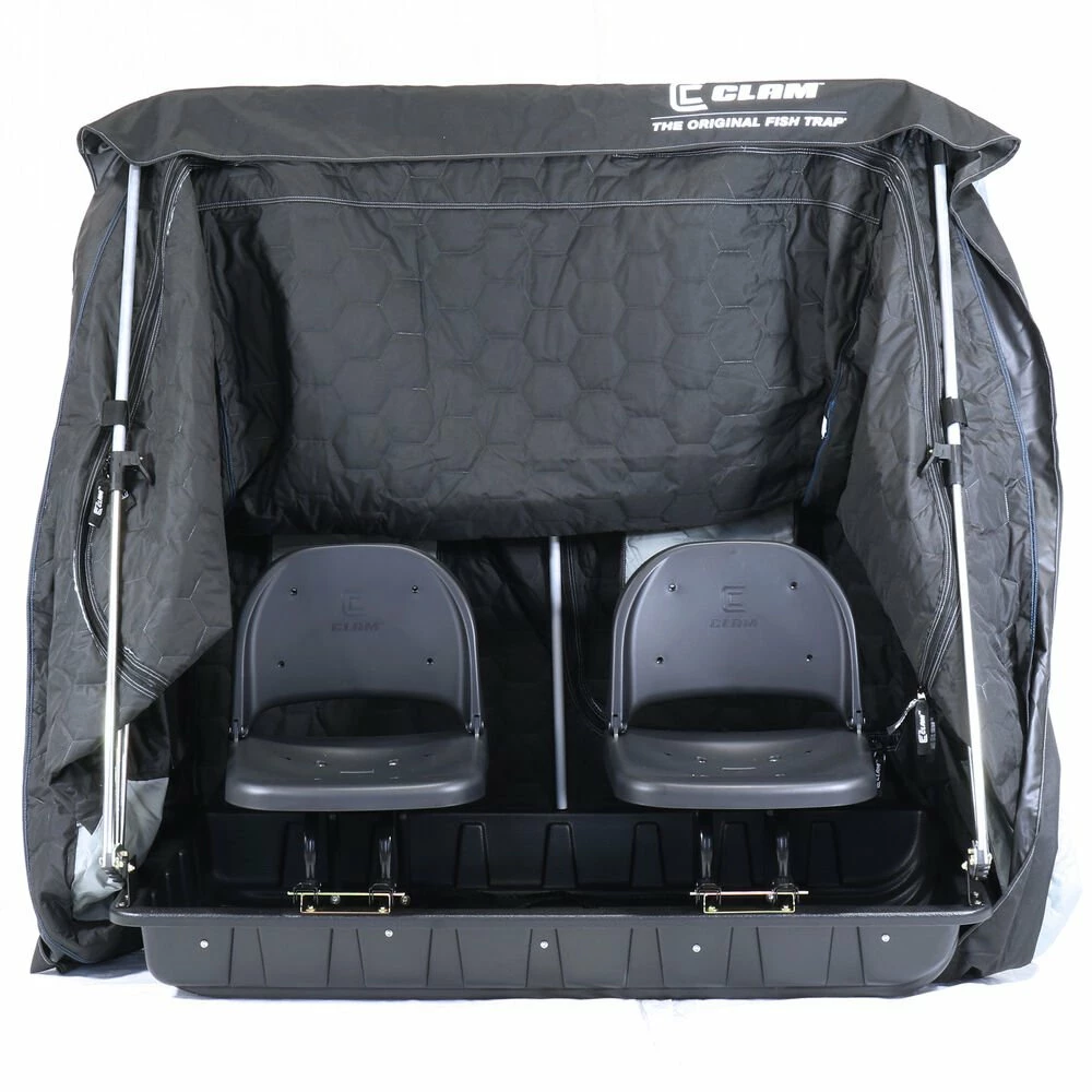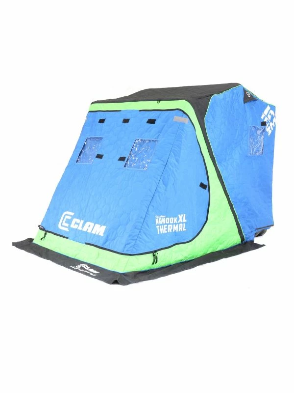 This two-person, thermal portable fish house allows two anglers to fish comfortably side-by-side. Or for really big guys, the Nanook works as a great one-person house. And with our exclusive Side Symmetry Door System (patent pending), anglers can get in and out of the shelter with ease. The Nanook Thermal XL is the thermal version of one of Clam’s most popular models over the years. This lightweight design cuts through the snow or glides easily across the ice to set you on top of the perfect spot. And a thermal skin retains heat and burns less propane. Comes with swivel seats and backrest (Padding sold separately). Front and rear access doors make access into this shelter easier than ever. Without extendable poles, the Nanook is a true “flip and go” shelter that’s perfect for the ice angler on the move.