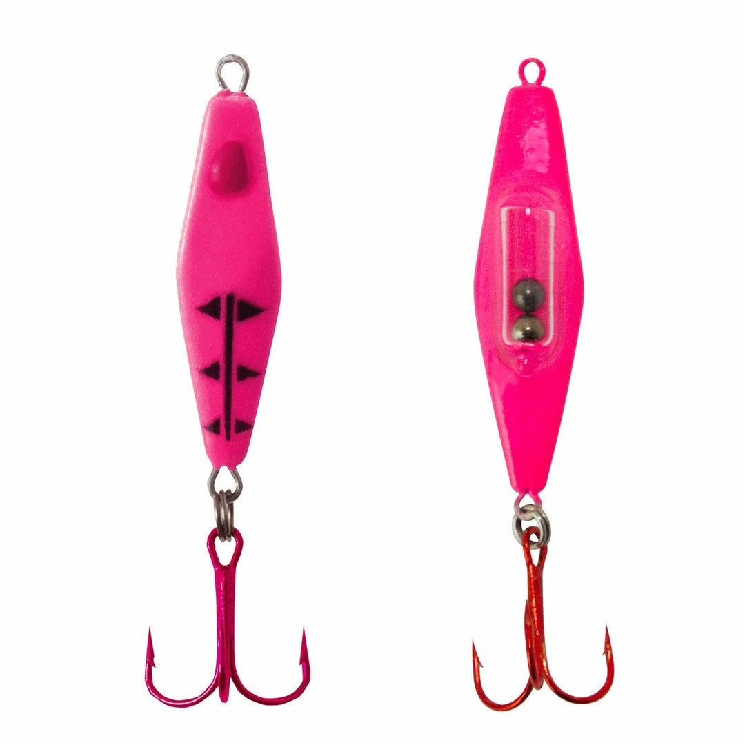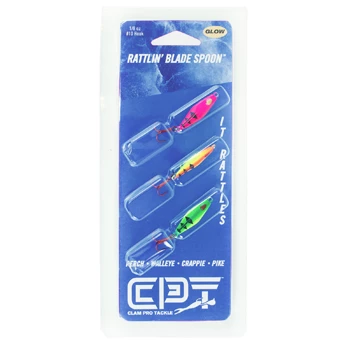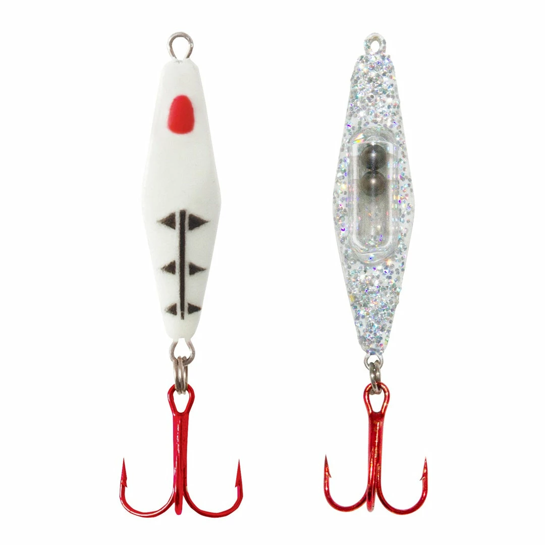 Don’t just hope a fish notices your presentation. Make’em notice with the loudest lure you can drop through the hole. The same slicing, fluttering action of the original Blade Spoon has now been given the upgrade of seriously loud rattles. The stainless steel bearings click and clack inside their pyrex-glass housing. Calling in fish from distances you didn’t think were possible.
