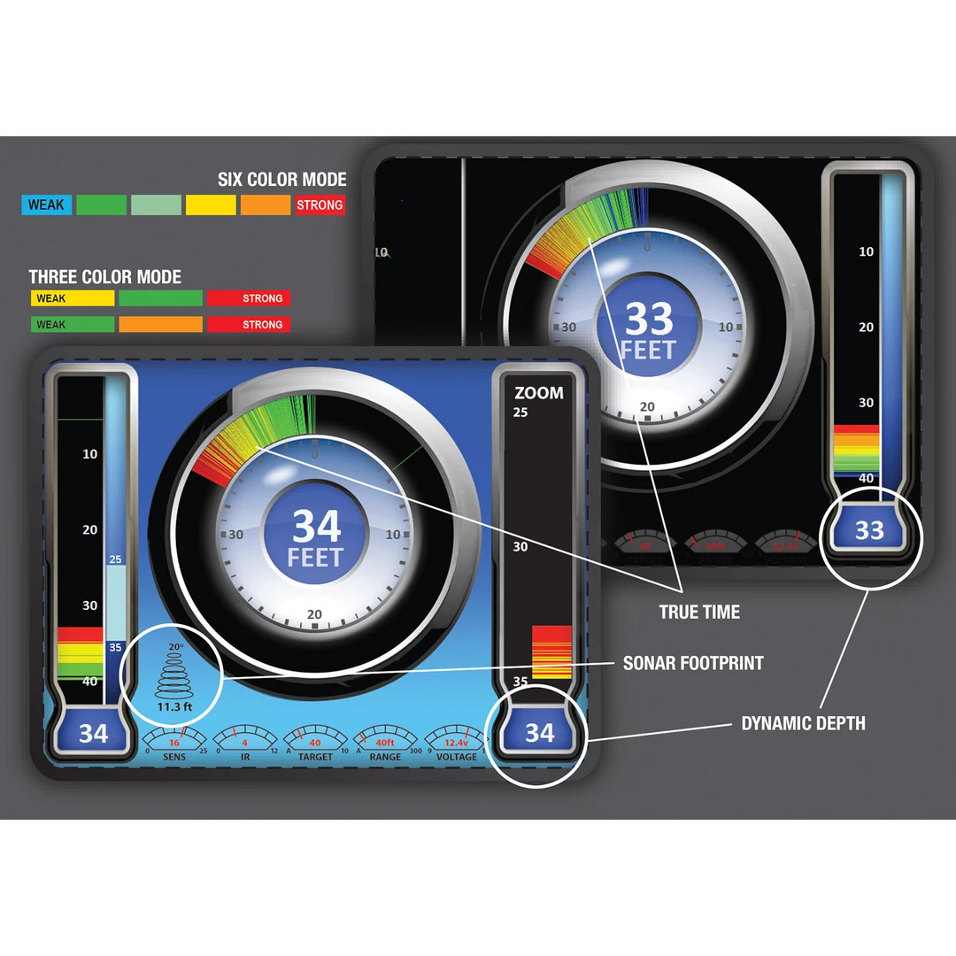 - Zoom: Automatic Bottom Lock Selectable Zoom Windows – 5′, 10′, 20′, 40′ Patented Infinitely Adjustable Zoom (Zoom anywhere throughout the water column)