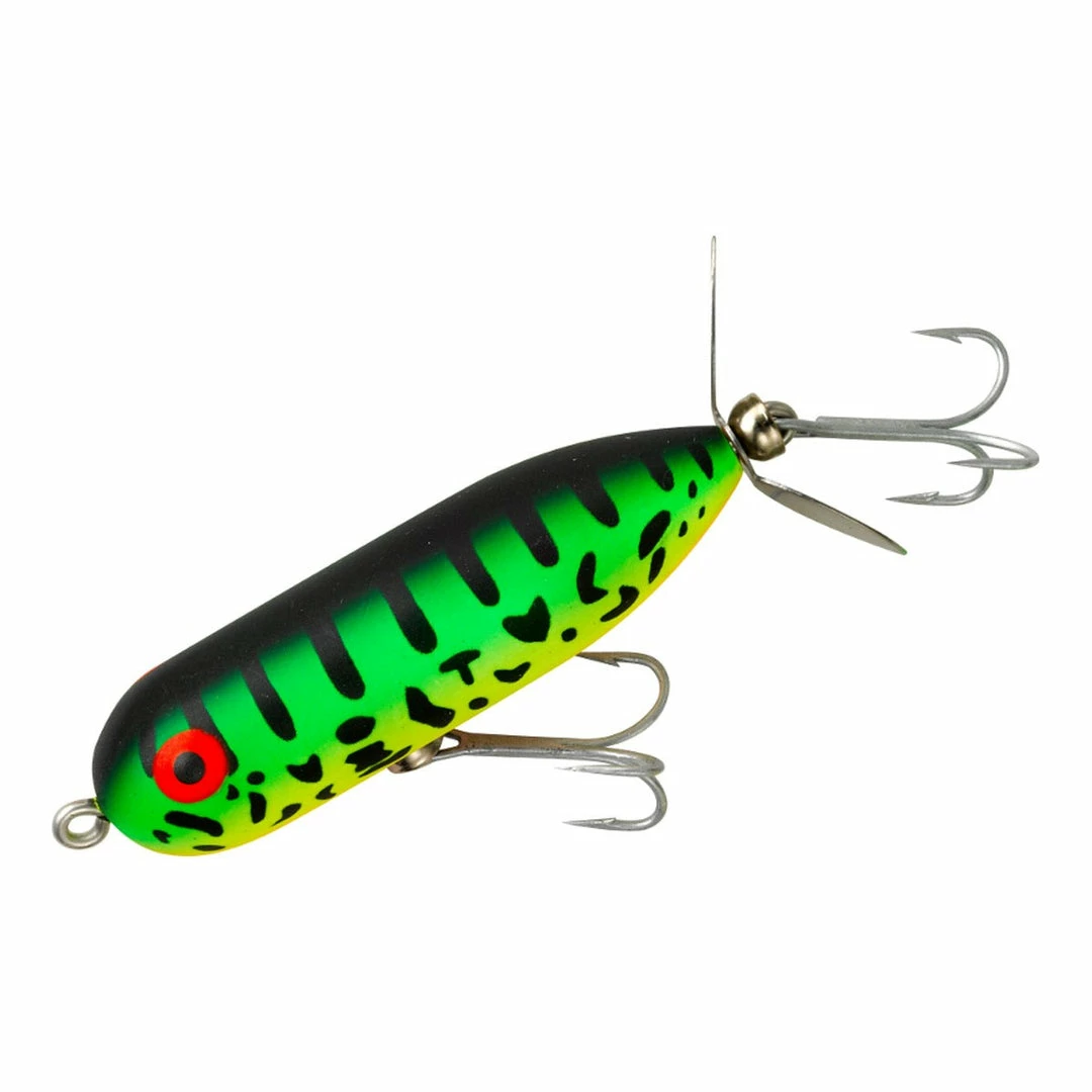 The Heddon Baby Torpedo is a proven topwater bait that smallmouth and largemouth bass can’t resist. Its single prop spins and spits water. The Baby Torpedo can be worked slowly with twitches and pauses or reeled constantly at a medium retrieve like a buzzbait. In rivers work the bait in shallow shoreline water in eddies near submerged rocks and in fast-moving riffles for giant smallmouth. In ponds and lakes pause the Torpedo near wood and weed cover gently twitching it to entice big largemouth.