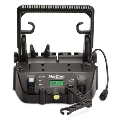 From the ice age to the digital age, MarCum’s vanguard LX-7 has forever transformed the game of hunting fish on frozen water. Over a decade of cutting edge sonar design in the making, the radically innovative LX-7 has been built with the optimum blend of sonar DNA from MarCum LX Flasher and Digital Fish Finding technologies. A true breakthrough in “big picture” ice sonar, LX-7 presents anglers with an incredible interactive ice fishing experience in a panoramic 8-inch LCD environment (four vividly rich color palettes included.) Multiple industry-exclusive features provide a dazzling array of precious fish-finding Intel. Fully user-defined on-screen “Dashboard” displays digital depth, battery voltage, range, gain, interference rejection (IR), target adjust, or any combination thereof. LX-7’s “Multifaceted Sonar Display” also gives anglers fully customize window views, including water-column vertical, vertical zoom, flasher-dial and traditional horizontal LCD graph displays. Sonar Footprint technology displays scan area at any depth, with either 8 degree or 20 degree transducer cone angles. This provides a keen awareness of fish targets relative to the transducer, and your lure; also helps prevent adjacent (non-MarCum) sonar users from picking up interfering LX-7 pulses by avoiding the “footprint” area. All LX-7s come preloaded with the full menu of MarCum’s patented features, as well as a USB ports for upgradability.