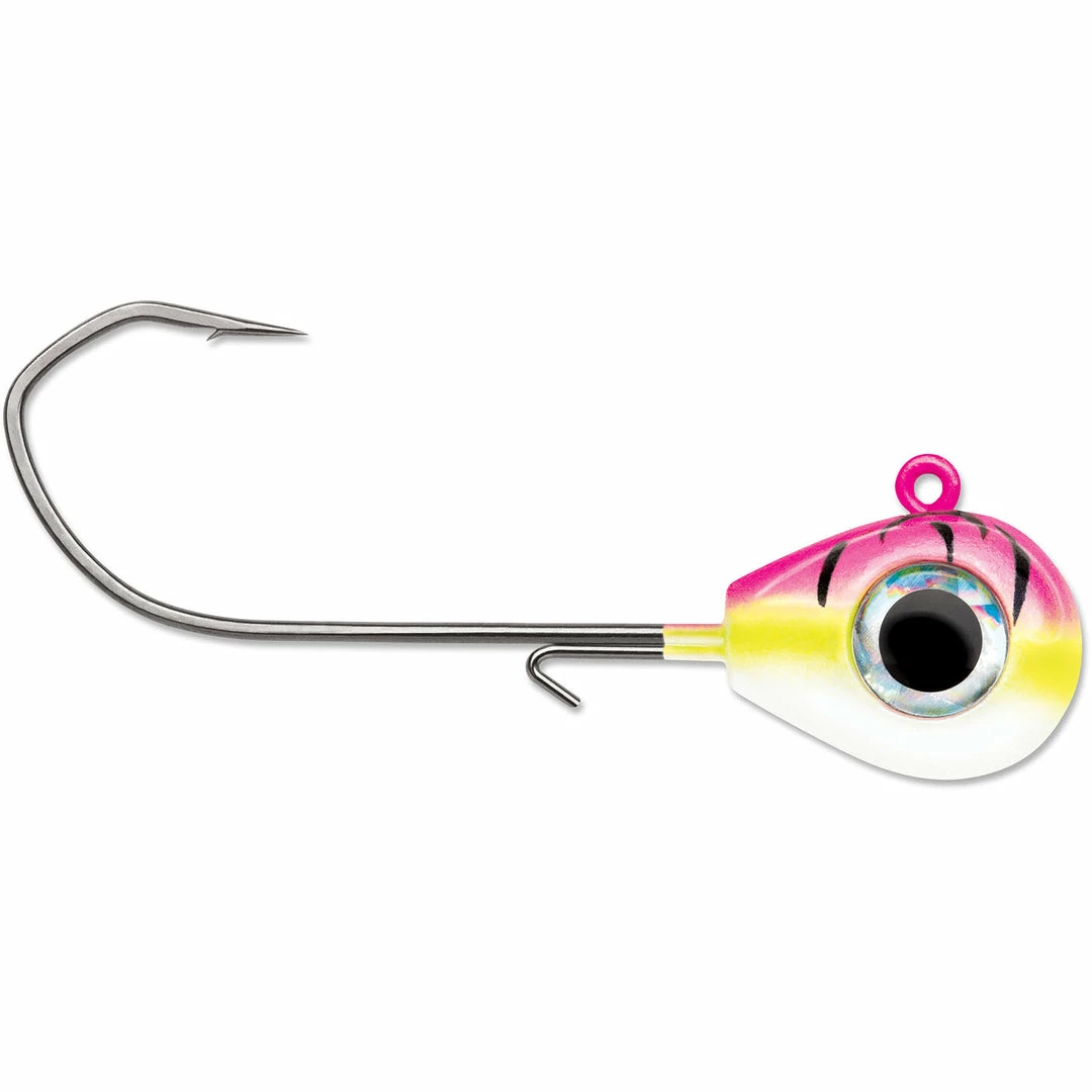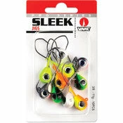 The VMC Sleek Jig Heads are made to maximize visibility and hook sets! The unique teardrop shape puts the weight forward on the jig head, which enhances stability and performance. Crafted from a premium hi-carbon steel, this jig head has a fast sink rate and is durable enough to take a beating! The UV paint reflects light for a vivid display that’s sure to draw some attention. A bait keeper along the back of the hook keeps your soft baits secure and in place. Make sure your lure is seen is with the VMC Sleek Jig Heads!