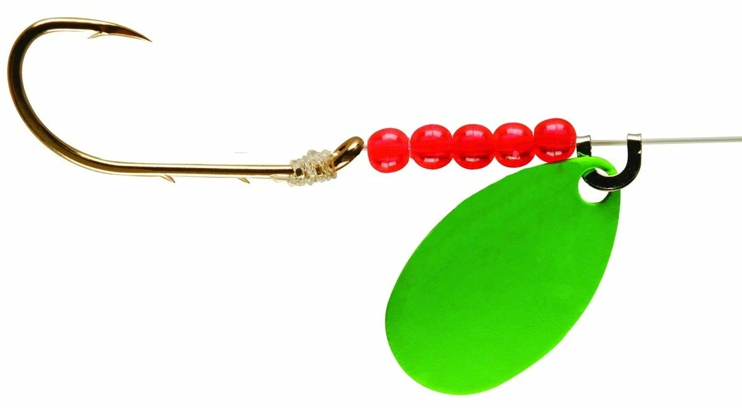 Lindy Spinner Rig (Indiana Blade) holds holographic blades that emulate primary baitfish patterns, while hand-selected Lindy Bead patterns match the secondary color hues that trigger feeding instincts. Hand-tied rigs use 72-inches of 14-lb fluorocarbon line and feature a #2 Octopus-style hook.
