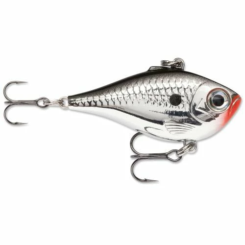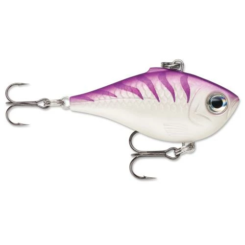 The Rippin’ Rap features a lipless, deep belly profile designed to crank, swim and rip. With its skinny sides this bait flutters on the drop. Hard vibrating action on fast or slow retrieves accented with loud, distinctive BB rattle system. Textured scales and gills with deep set 3D holographic eyes. Super easy to fish, the Rippin’ Rap® is perfect for pulling over or through grass, bouncing off timber and rippin’ through rocks. Long-casting with variable running depth, this one is just right for clear water where look is key or for fishing stained, dark water where just the right sound is essential. Fast piercing VMC® black nickel hooks seal the deal.