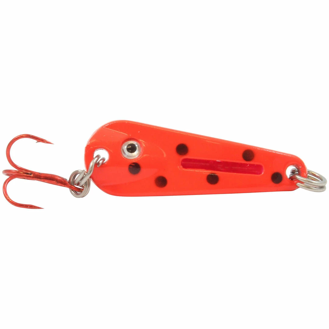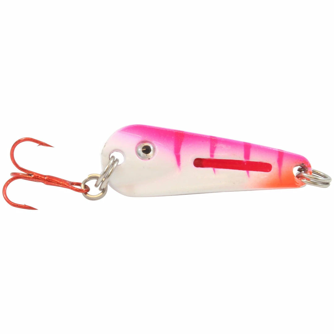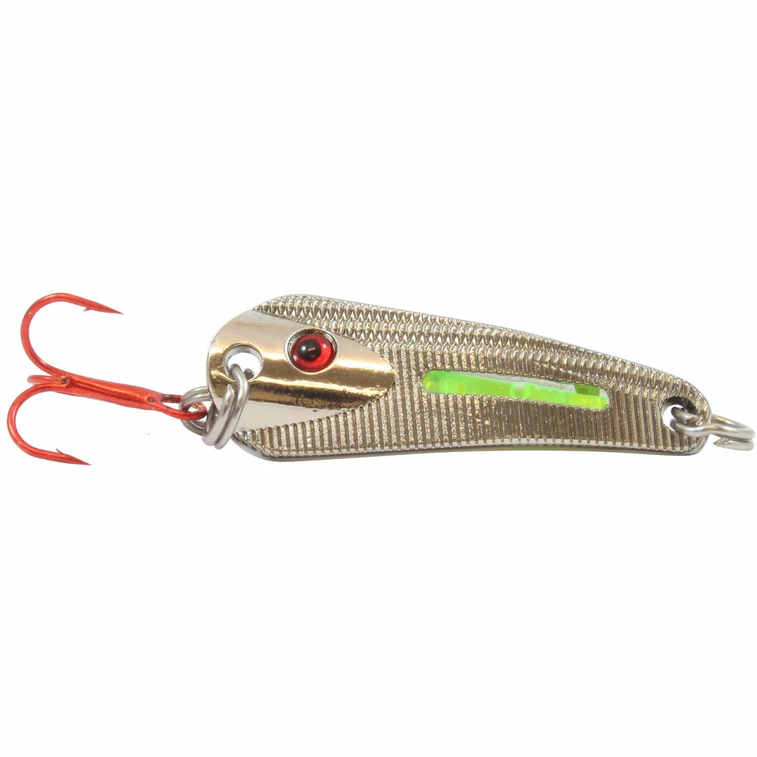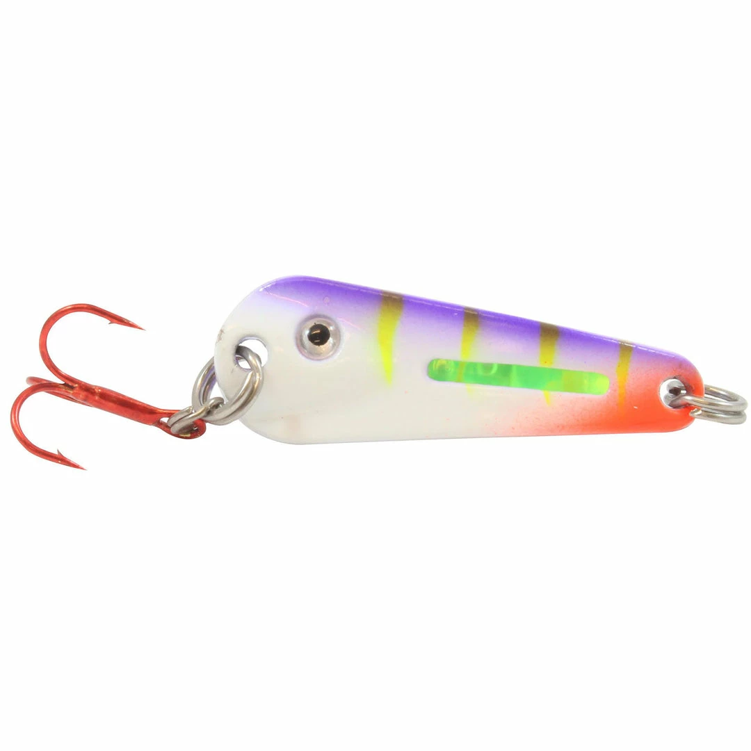 Glo-Shot™ Spoons are available in 1/16-, 1/8- and 1/4-ounce weights, with red treble hooks in #12, #10 and #8 sizes, respectively. Hooks are attached via dual split rings for added action and fewer lost fish.