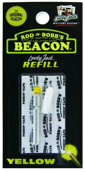 LuckyJack battery refills are available in Red, Yellow & Green. Each LuckyJack battery stick comes complete with a light enhancing cap (when attached also makes the light water proof) and a strong water-proof adhesive tape! Our batteries are easily activated by PUSHING the top to turn ON and PULLING the top to turn OFF.