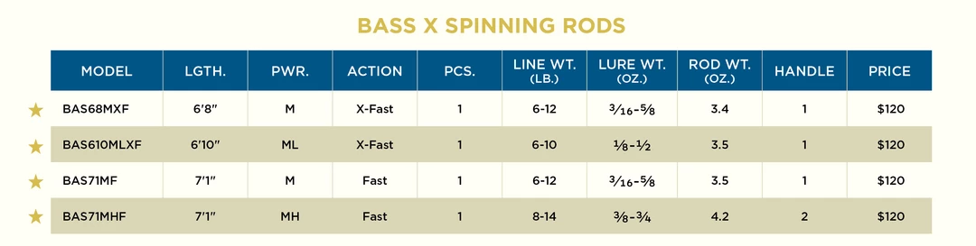 Handcrafted using St. Croix’s most durable material SCII, yet sensitive to provide you the upper hand on the water. BassX is versatile with rods specialized to fish a finesse dropshot to a swimbait. BassX is reimagined with features including a carbon fiber reel seat inserts on select models, a hybrid guide platform, and technique specific handle configurations with a new spinning handle allowing for multiple hand positions to better fish several techniques.