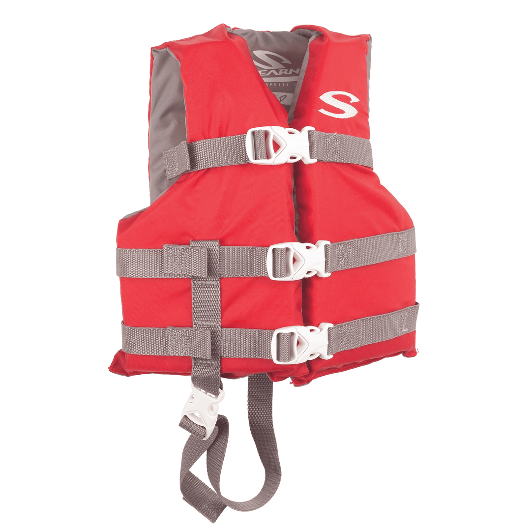 Whether they’re on a boat, a tube, water skis or a personal watercraft, your children will have a blast in Stearns® Child Classic Series Vests. They’re specially-fitted for children 30-50 lbs. The Coast Guard-approved life jacket is designed with open sides, three adjustable chest belts and a crotch strap for a tight fit and better movement. Durable nylon construction and PE flotation foam, along with 1″ (2.54 cm) webbed straps will allow you to use this vest season after season.