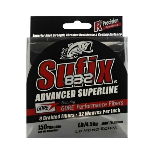 Sufix 832 Advanced Superline is known as the strongest and most durable braid in the fishing world. It utilizes R8 precision braiding and fiber technology to provide superior strength, shape, and line consistency. This Superline is constructed with 8 fibers, including 7 HMPE fibers and 1 GORE performance fiber with 32 weaves per inch. In addition to water-repellent protection, HMPE fibers also improves line strength and sensitivity. The GORE performance fiber enhances abrasion resistance, increases castability, and reduces line vibration.