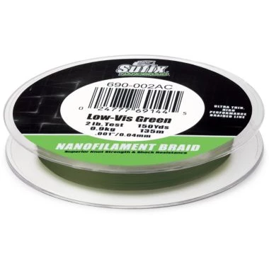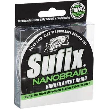Excellent for finesse-fishing techniques such as jigging and drop-shotting. Sufix’s Nanobraid Nanofilament Braid offers an ultrathin diameter for extreme sensitivity and long casts without sacrificing strength. Anglers are free to use Palomar, uni to uni knot and many others, as no special knot is required. Made with 100% Dyneema® fibers for uniform diameter, increased abrasion resistance and superior knot and shock strength. Wide-angle braiding technology creates a tight weave and super strong, silky smooth line. 150-yd. spool.