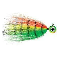 TechSet® technical locking curve maximizes hook sets and locks fish in place. Oversized flat aspirin head shape enhances darting and rolling head motion when jigged. Low profile elongated bucktail fibers maintain shape and creates life-like action. UV BRIGHT Finish reflects more light energy, strengthening the lure’s visibility.