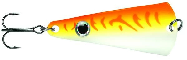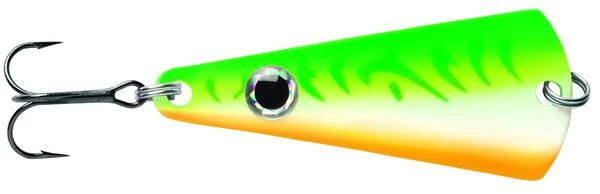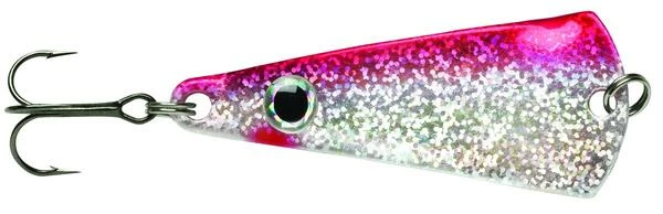 The VMC® Tumbler Spoon is the ultimate one-two punch lure. It’s unique “knuckle” bend offers a slow tumbling action for those finicky biters or when a subtle action spoon is critical to matching the behavior of neutral to negative fish. The knock-out blow is the addition of the small metallic attractor blade which adds additional flash and sound when coming in contact with the spoon and hook. Holographic Ultra Glow colors lasting up to 15 minutes, UV finishes, natural baitfish patterns, and holographic eye match the hatch to any fishing condition either on open water or under the frozen tundra!