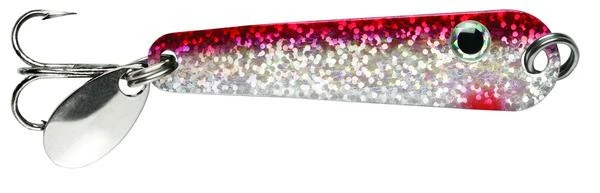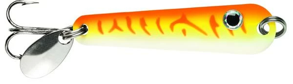 The VMC® Tumbler Spoon is the ultimate one-two punch lure. It’s unique “knuckle” bend offers a slow tumbling action for those finicky biters or when a subtle action spoon is critical to matching the behavior of neutral to negative fish. The knock-out blow is the addition of the small metallic attractor blade which adds additional flash and sound when coming in contact with the spoon and hook. Holographic Ultra Glow colors lasting up to 15 minutes, UV finishes, natural baitfish patterns, and holographic eye match the hatch to any fishing condition either on open water or under the frozen tundra!